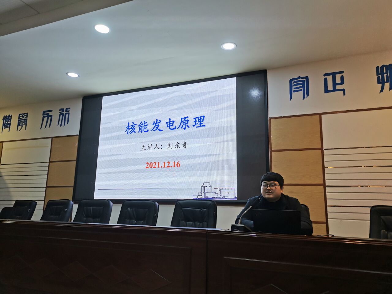 12月16日晚上,电气学院在工科一号楼B503会议室,举办了通识教育学术讲座,电气学院博士刘东奇做了“核能发电原理与中国核工业的发展”的主题讲座,学院电机学课程组负责人王旭红教授主持讲座、教务办黄建华、课题组周腊吾教授和108名相关学生聆听了讲座。