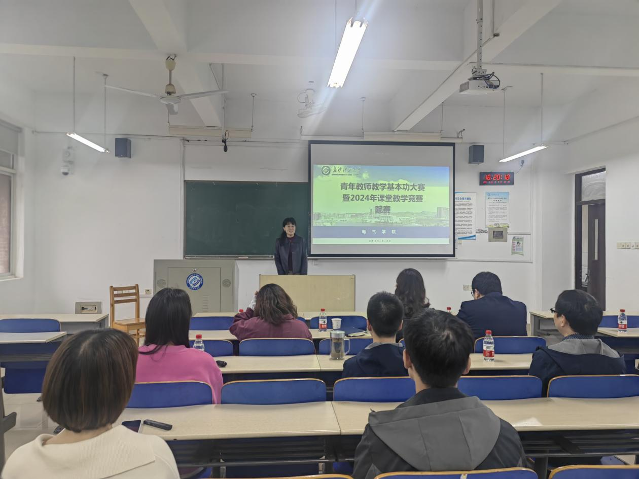 3月22日,学院青年教师教学基本功大赛暨2024年课堂教学竞赛在工一B202室举行。经过各系初赛选拔、推荐,共有7位青年教师参赛。副院长王媛媛、电力系副主任蔡晔、继续教育学院学籍学位与网络技术部主任张静担任评委。