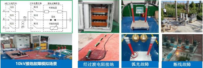 10kV故障模拟子系统:配置多类型故障模拟单元,可以模拟各种接地故障、雷击故障与覆冰断线故障,包括:经过渡电阻接地、电缆放电、球隙放电、草地弧光、对泥土放电、对沙地放电、对水泥放电、对树木放电等各种类型故障。故障模拟系统具备高精度控制和测量装置,可以实现瞬时性接地故障、永久性接地故障。