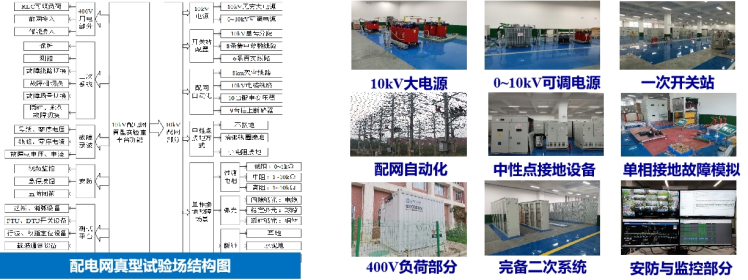 该试验场具有完备的二次设备,含各种保护装置、配电自动化系统、高精度故障录波系统、远程监控系统;可以开展各种工况条件下的配电网一次设备和二次设备的各种试验测试,包括:一二次融合成套柱上断路器、环网柜、各种中性点接地装置、各种储能设备、各种故障指示器、电力载波装置、配电网故障行波定位装置、集中式或分布式选线装置、配电保护装置、微网控制系统、用电安全测控装置、综合能源管理装置等设备的研究及测试工作,可用于人才培养、科学研究、产品研发、产品入网试验测试,部分产品可出具CNAS委托检测报告。