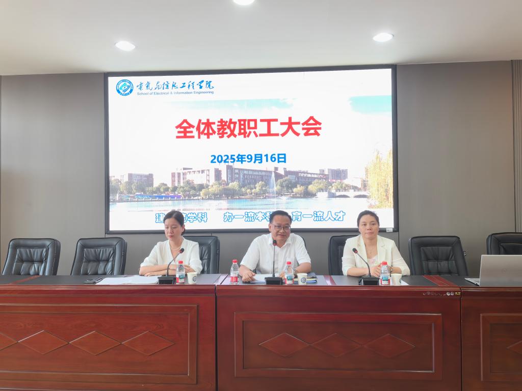 9月16日,学院在工科五楼报告厅召开新学期第一次全体教职工大会。校党委委员、副校长刘朝晖,党委组织部副部长乔法光出席会议。会议由院党委书记丁丹主持,学院全体教职工参加。