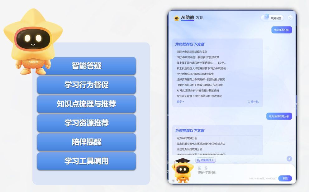 创建AI助教。作为全校唯一,“人工智能+高等教育”,典型案例推荐至教育厅,针对实用类知识、跨学科知识等,高阶思维的培育问题。