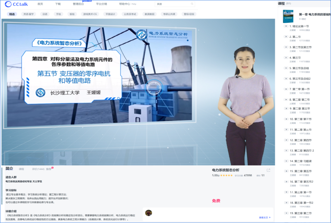 团队近5年共计承担74个本科班级2876名学生的教学任务,教学质量学校排名领先。曾排全校第2、全院第1。2010年获批湖南省精品课程,2018年课程团队参与获评“全国高校黄大年式教师团队”,2020年获批湖南省线上线下混合式一流课程,2021年出版课程思政案例集,2023年出版“十四五”电力行业规划教材并被推荐为国家级一流课程。