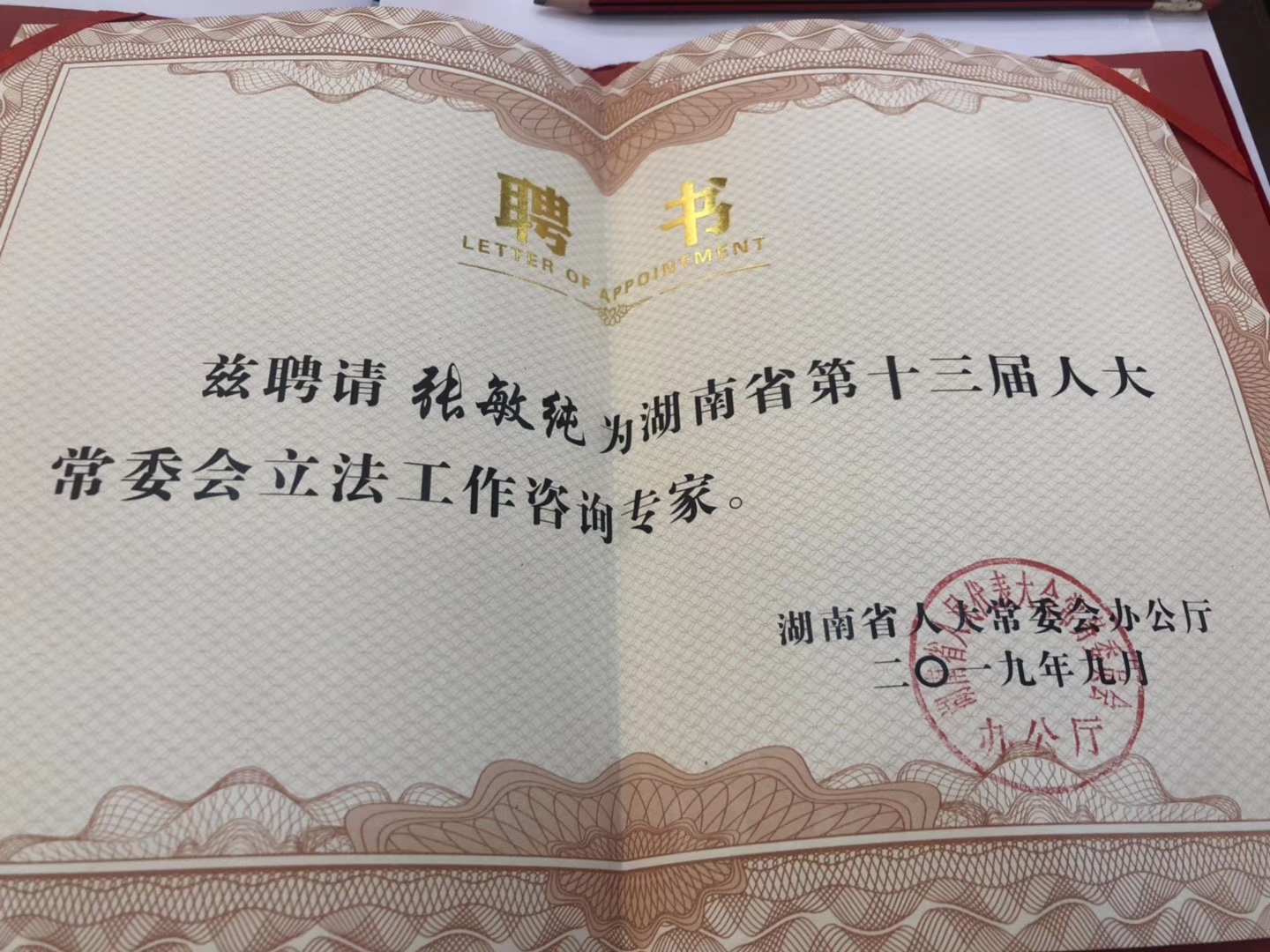 为了提高省人大及其常委会立法质量,促进立法决策的科学化、民主化,进一步发挥专家学者在地方立法工作中的参谋咨询作用,经省十三届人大常委会第38次主任会议决定,聘任我校无党派人士张敏纯等56名在法律或者其他领域学有专长,具有较高研究水平、学术成就和知名度或者具有丰富的实践经验,热心参与人大立法工作的专家学者,作为省人大常委会立法工作咨询专家。