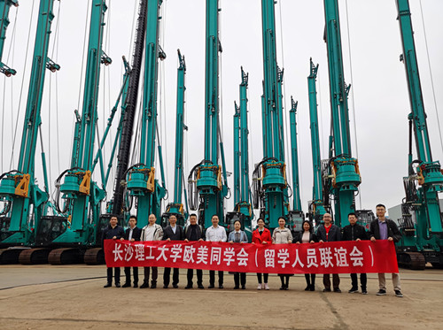 会员一行首先来到位于山河智能总部的上海宝马展长沙分会场观看航空装备、工程装备展示,接下来参观挖掘机总装车间,察看各类挖掘机自动装配生产线、新产品试制车间和智能信息化物流仓储,听取负责人讲述企业发展情况,了解其科技创新研究成果。座谈交流中,会长梁波介绍了我校欧美同学会发展现状、会员研究专长和产学研合作优势,以及我校科技成果转化情况,电气与信息工程学院副院长夏向阳、国际学院副院长秦卫星等会员分别就具体合作事宜进行探讨。