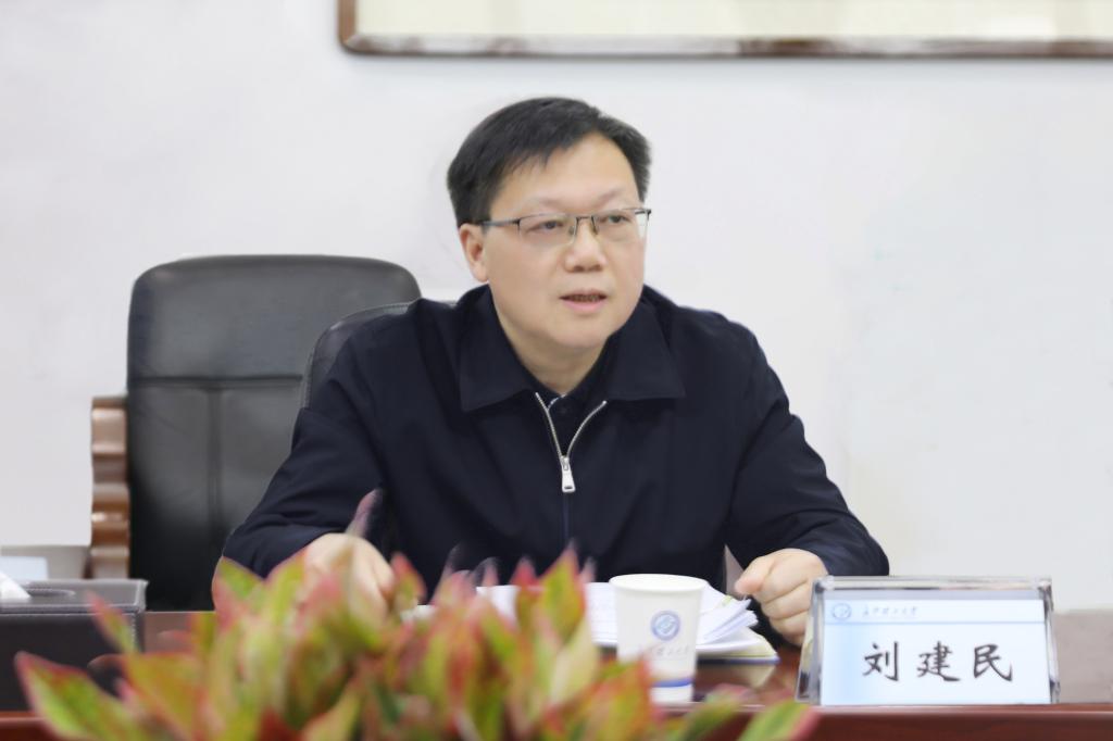 刘建民代表学校感谢向恩明一行来校检查指导。他表示,学校将坚决落实好中央和省委有关统战工作的精神和要求,切实提高政治站位,跟上新时代统战工作新要求,履行好统战工作主体责任,发挥统战功能作用,推动高校统战工作高质量发展,为决胜建成“百强”大学和全面建设社会主义现代化新湖南贡献智慧和力量。