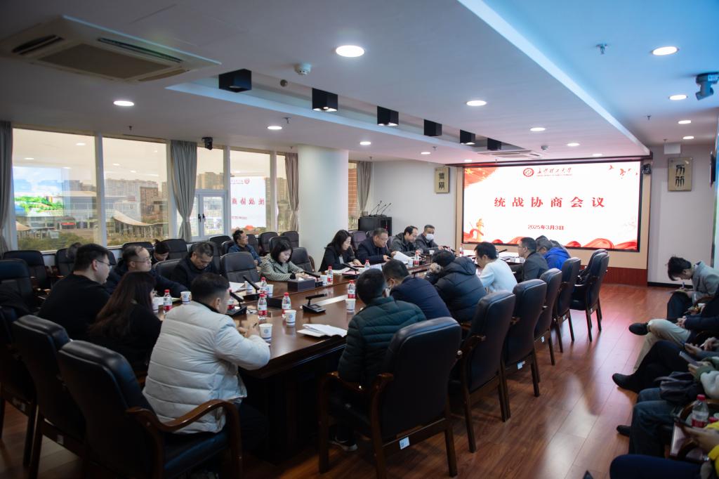 会上,统战部负责人介绍了寒假期间统战工作开展情况,并从服务进一步全面深化改革和”双一流”建设、开展党外干部素质提升工程、加强党派团体自身建设、打造党外代表人士工作室、发挥参政议政作用、注重对外交流、联系引进海外优秀人才等七个方面对学校2025年统战重点工作进行了通报。