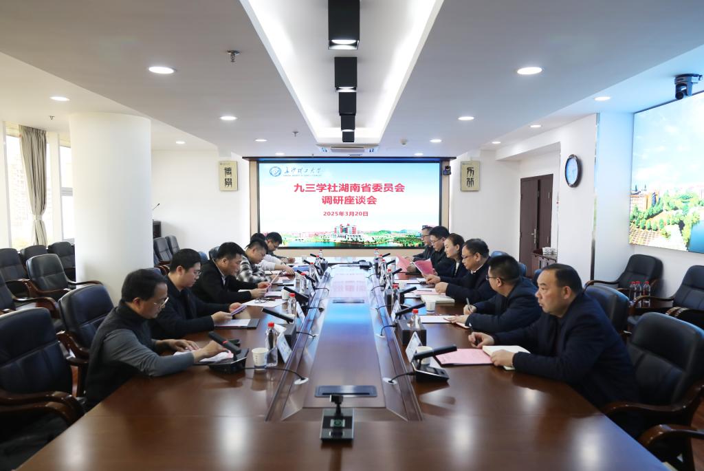 为深入贯彻落实沈晓明书记在各民主党派省委会、省工商联和无党派人士参政议政专题调研协商座谈会上的讲话精神,以高水平参政议政助力编制好湖南省国民经济和社会发展“十五五”规划,3月20日下午,九三学社湖南省委员会秘书长吴国寰一行来校就“湖南高校科技人才服务产业发展的政策支撑研究”课题开展调研座谈。学校统战部、人事处、科技处、发展规划处相关负责人及九三学社2025年新澳门原料网站委员会相关代表参会。