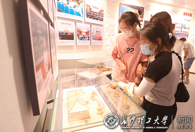 流光溢彩的“学科树”、浸润于书香中的“书山学海”、令人身临其境飞越“大美长理”的巨型曲面屏、展现长理四时美景和学校第四次党代会“一二四四五五”发展战略的音符路、微缩复刻的港珠澳大桥和矮寨大桥、陈树湘故居和十八洞村等多个湖湘红色文化地标……师生校友们一路观展,一路称赞。基地运用声光电现代科技手段和视觉美学,采用景窗模型、艺术沙盘、艺术浮雕、体感互动等多种形式,营造了全景式、互动式、沉浸式展陈体验,让观展者在“见人、见物、见景、见情”间徜徉于我国高等教育波澜壮阔的历史长河,置身于我校火热多姿的教育实践现场,在艺术和科技交融之美中启迪思想、浸润心灵、涵养品格。