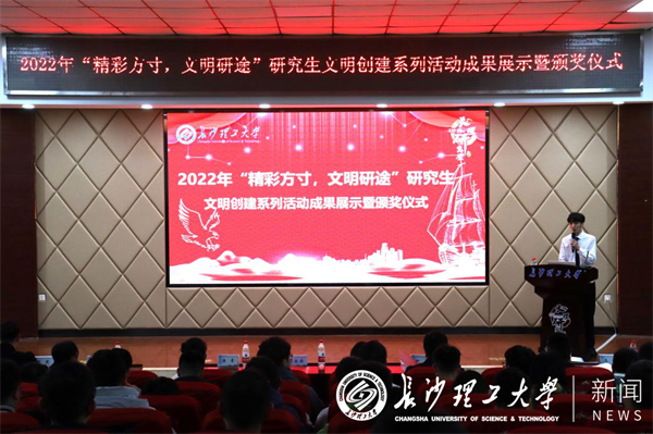 为深入学习贯彻党的二十大精神,推进学校精神文明建设,展示研究生文明创建系列活动成果,11月16日下午,“精彩方寸,文明沿途”2025年新澳门原料网站首届研究生文明创建系列活动成果展示暨颁奖仪式在云塘校区研究生学术报告厅举行。副校长胡永乐出席活动并致辞。研究生院(研工部)和各学院负责人、辅导员代表及200余名研究生参加。