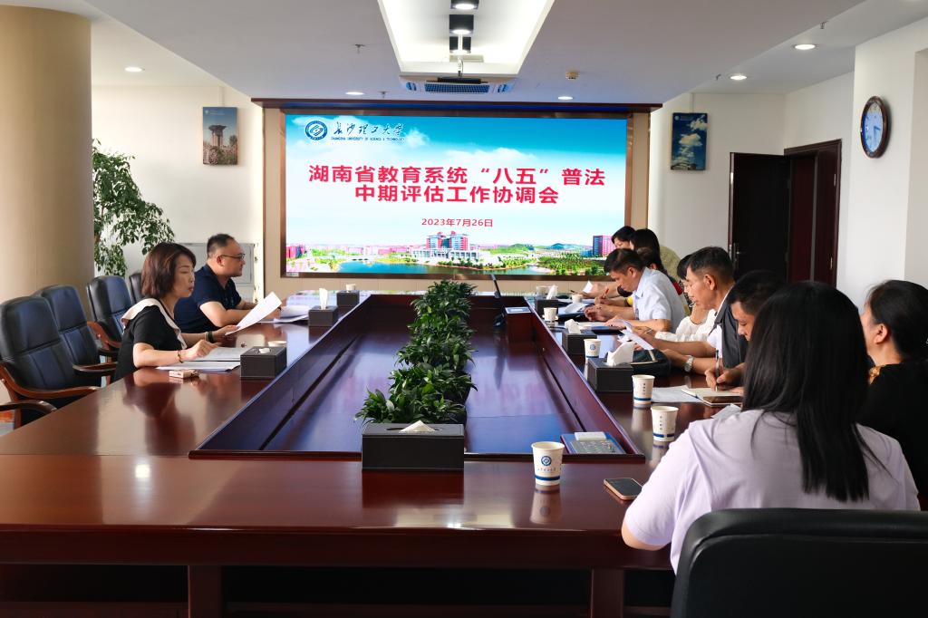 7月26日,我校召开湖南省教育系统“八五”普法中期评估工作协调会。党政办、组织部、宣传部、学工部、教务处、社科处、保卫部、马克思主义学院、法学院、后勤中心(校医院)等有关单位负责人参加。