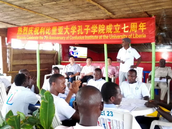 首先,孔院外方院长Bah博士向与会人员介绍了后埃博拉时期孔子学院所做的成绩。他认为,孔子学院是利比里亚认识中国,学习汉语和中国文化的良好平台,鼓励在读的学生以提升自我为首要任务,认真学好汉语。