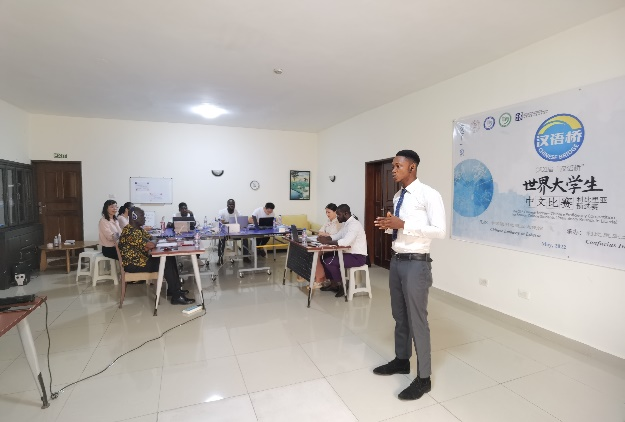 利比里亚教育部助理部长Bongolee在发言中表示,孔子学院是连接利中两国友谊的桥梁,孔子学院的学生都是利中友谊的受益者,十分感谢利比里亚大学孔子学院给学生提供学习中文的机会。他还表示,在疫情期间,获得奖学金的学生虽然去不了中国,但他们所申请的中国高校一直坚持通过线上开展中文教学,提升他们的中文水平。