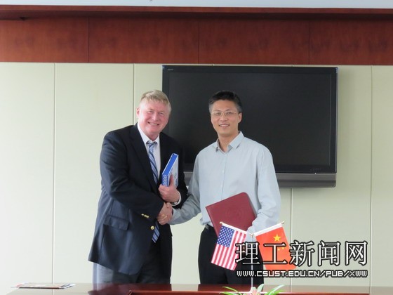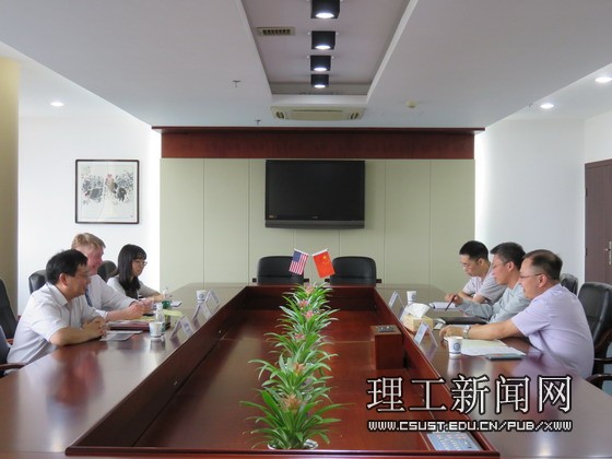 双方首先简要介绍了各自学校的基本情况。蒋昌波表示两校在学科设置、人才培养等方面有很多共同点,双方可充分利用优质教育资源,实现优势互补,可首先开展长短期师生互访项目,再进一步进行合作科研。Mike Southwell教授非常赞同其观点,并着重介绍了东斯特劳斯堡大学的创新中心、英语语言培训及与中国其他高校展开的合作项目,希望可以为两校的合作提供参考。其创新中心尊重各种创新,可为有创新精神的企业、学者及个人提供办公设备及其他协助。双方还就合作举办孔子学院、建立中美中心等可能性进行了探讨,初步达成合作意向,并约定签署合作协议以实施具体合作。会议在愉快的氛围中结束,双方合影留念。会后Mike Southwell在相关人员的陪同下参观了校园。