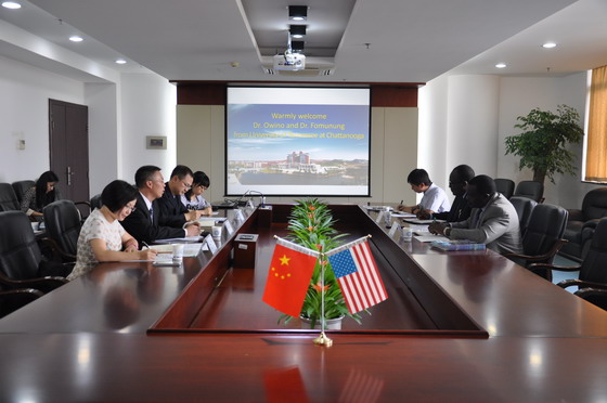 9月14日下午,应我校邀请,美国田纳西大学(Chattanooga)合作办学项目负责人:土木与环境工程系主任Joseph Owino教授与该系Ignatius Fomunung博士来访我校,副校长蒋昌波教授在云塘校区会见了客人,国际交流处、教务处、国际学院、土建学院相关负责人及教师代表陪同会见。