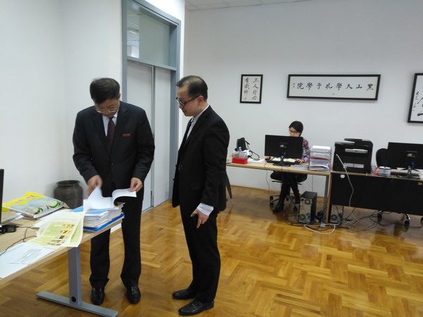 12月4日下午,付宏渊一行走访了黑山大学孔子学院,实地考察我校孔子学院在黑山的运行及发展情况,并对孔子学院的现状和未来规划提出了中肯的建议,同时询问了孔院教师和志愿者们的工作和生活情况。他说,黑山大学孔子学院成立3年来,从最初的数名学生发展到现在黑山全境19个教学点,注册学生总数超过500人,为在黑山传播汉语和中华文化、提高中国在黑山的影响力作出了积极的贡献,希望学院继续蓬勃发展,将中华语言和文化传播事业多层次、全方位地开展起来。