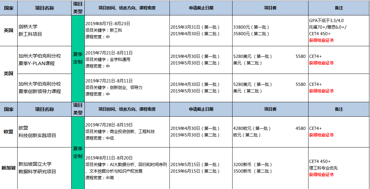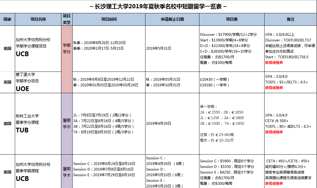 为进一步扩大国际化交流,为我校学生提供更多的赴外学习交流机会,我校2019年夏秋季开展了多国别名校对外交流项目。具体交流项目请参见下表。具体招生简章、课程安排请参考文末附件或咨询我处国际项目办(联系方式附后)。