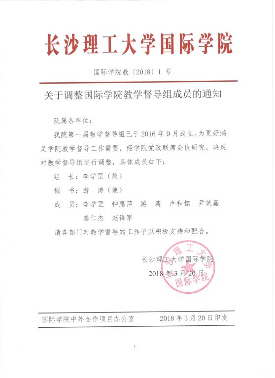 关于调整国际学院教学督导组成员的通知