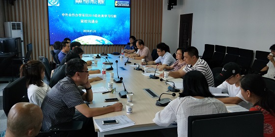 7月31日中外合作办学项目(土木工程专业)2015级学生赴美国田纳西大学查塔努加分校学习行前家校沟通会在新能源大楼1栋4楼国际学院会议室顺利召开,10位赴美学习学生及其家长、国际学院院长陈瑜、副书记吴振华、副院长秦卫星、中外合作办学项目办公室老师参加,会议由陈瑜主持。