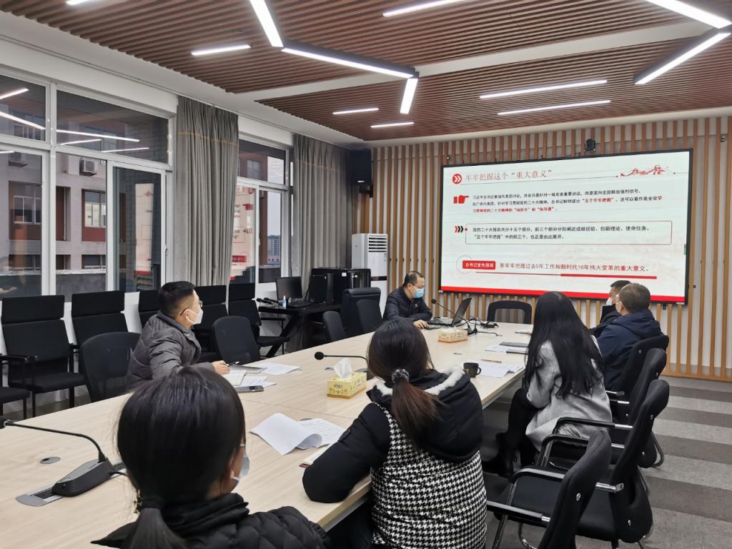 12月13日下午,国际工学院党总支理论学习中心组在新能源1号楼416会议室专题学习党的二十大精神。会议由党总支书记王学成主持,全体班子成员参加了会议。