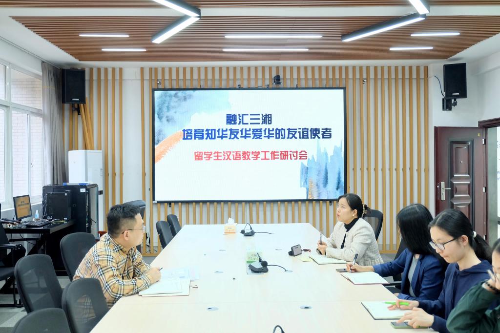 为进一步提高留学生汉语教学质量,凝练语言与文化教学的湖湘特色,4月11日下午,国际工学院召开以“融汇三湘——培育知华友华爱华的友谊使者”为主题的留学生汉语教学工作研讨会。院党总支书记王学成、副院长黄月华以及承担留学生汉语教学的任课老师参会。