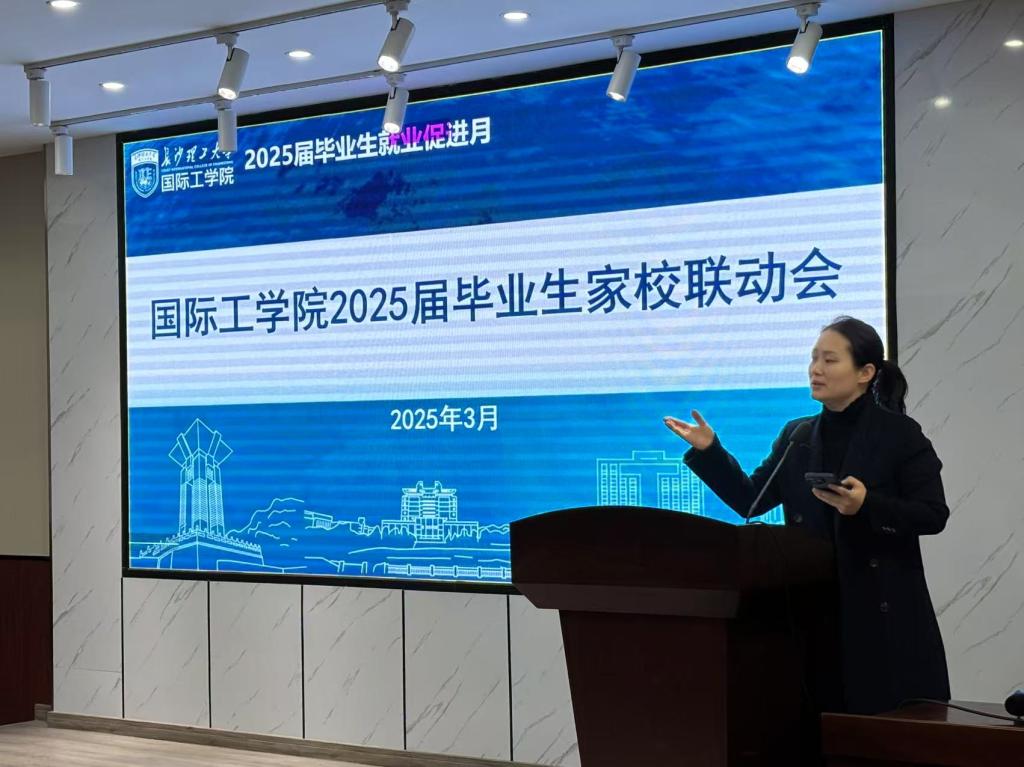 3月7日上午,国际工学院在文科楼D区207报告厅召开2025届毕业生就业促进会暨家校沟通会。学院党委书记黄自力、校创业就业指导处副处长贺佐杰、学院党委副书记兼副院长黄黎明、2025届毕业生辅导员及2025届毕业生家长代表、毕业生代表、班级就业助理参会。