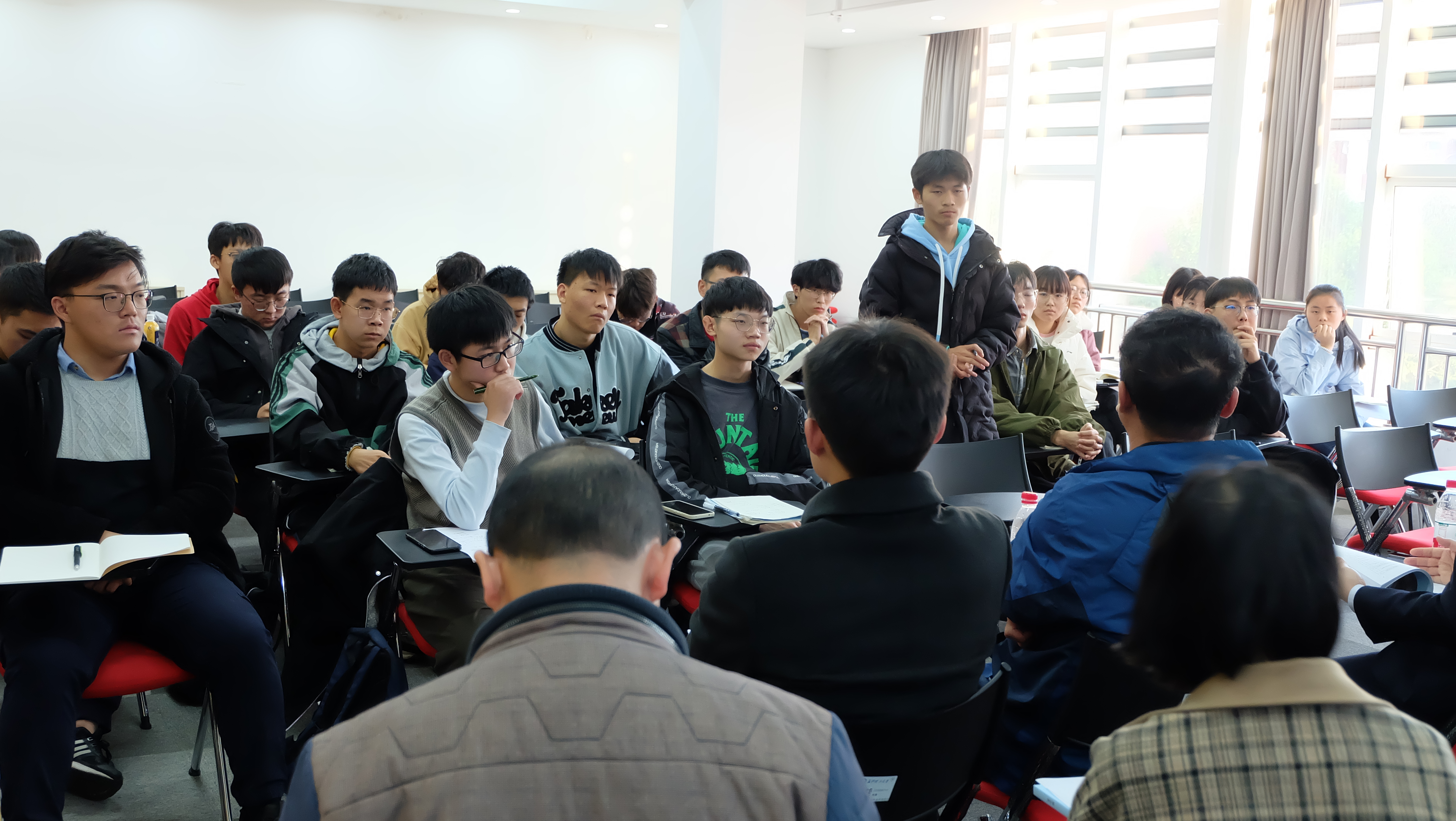 吴迪龙强调了大学期间夯实专业基础的重要性,勉励同学们树立远大理想,将个人兴趣与职业发展规划紧密结合,努力学习,将自己培养成为具有家国情怀和国际视野的拔尖创新人才。秦卫星通报了2020级机电类教改班学生第一学年学业修读以及英语四、六级过级情况,介绍了学业导师的主要工作职责。 随后,各位学业导师分别介绍了所在学院办学情况、自身研究方向和行业发展趋势,与同学们围绕专业学习、国际交流、学科竞赛以及未来规划等问题进行了热烈互动交流。