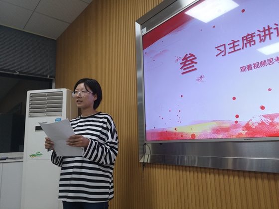 接着,由团支书韩璐来主题“学习习近平总书记十一重要讲话精神”分享。她谈到了国庆节的由来,国庆阅兵的意义,以及其所彰显的新时代赋予中华民族和中国人民的家国情怀和时代精神。