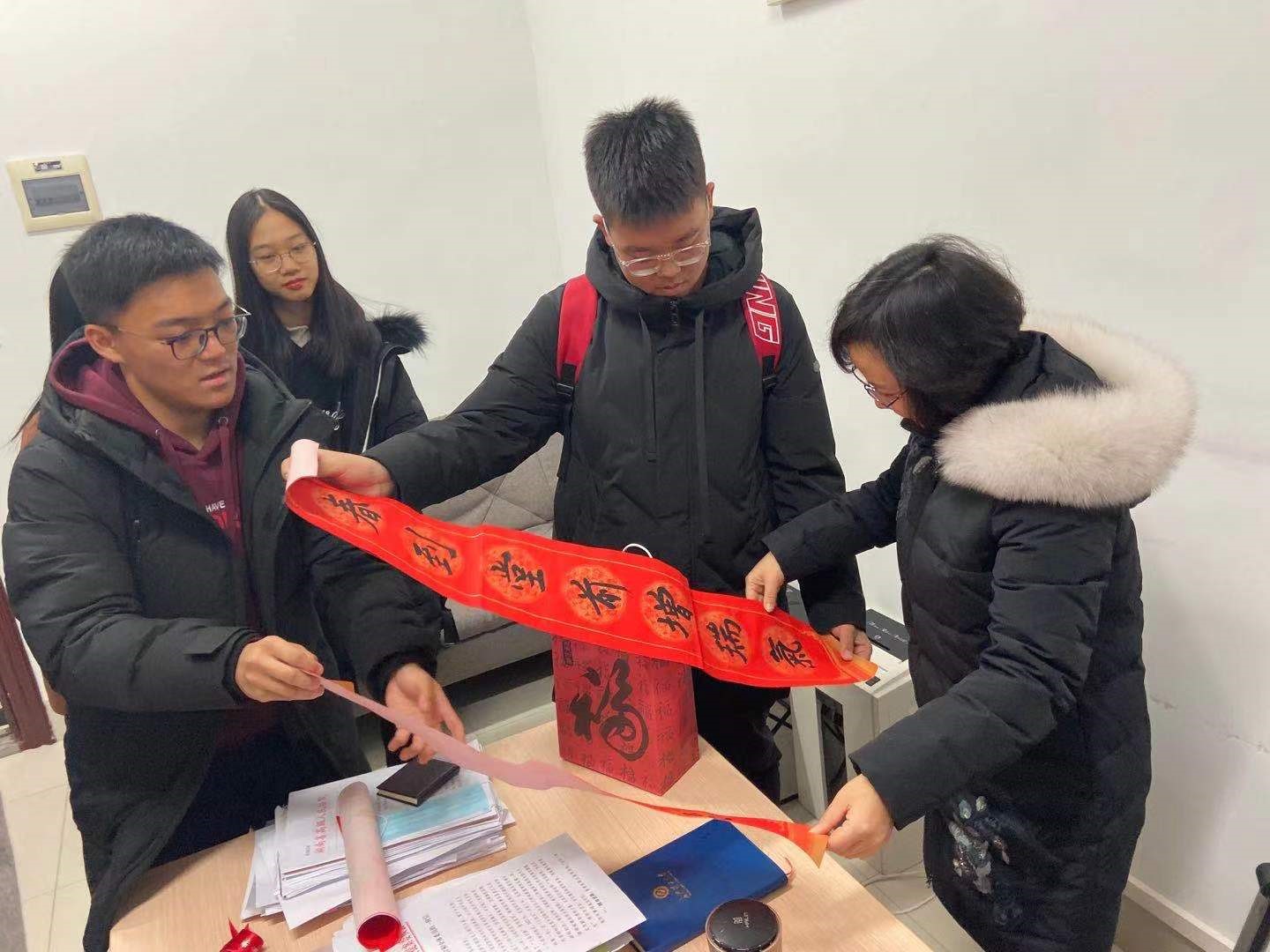 赵胜祥谈到,班上有6名同学和自己一样来自河北,虽然家都在疫情低风险地区,但是老师和同学们都很关心自己家乡的情况,在忙碌的工作和学习中多次抽出时间给与大家生活和学习上的指导,他又想到老师曾鼓励自己发挥长,在学院的中秋晚会和“国际青年文化沙龙”等活动中现场教留学生写毛笔字,最终花了一个周末完成了书写,和班上的同学一起打包成新年祝福礼包,一来是表达感谢,二来也是希望用喜庆的对联寄托对新年的新期望。