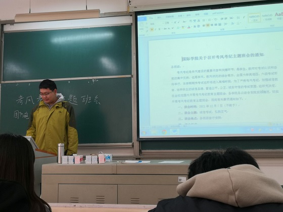 为进一步加强考风考纪教育,构建诚信校园,营造公平、公正、诚实守信的考试氛围,12月4日至7日,国际学院各班级召开考风考纪教育主题班会。各班班主参会,由班长主持会议。