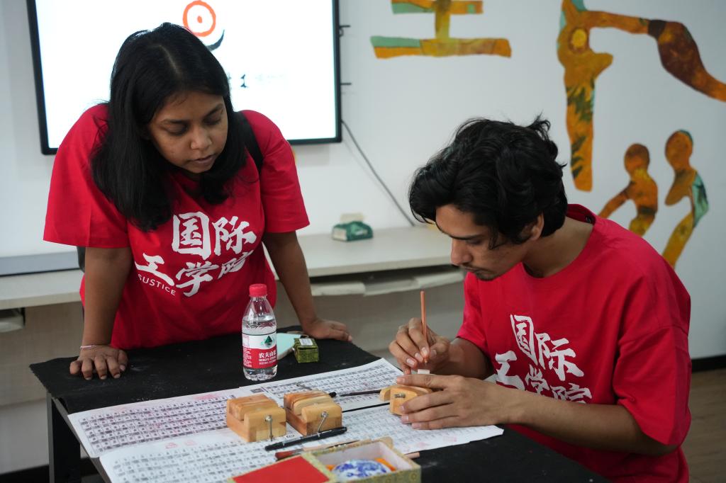 为庆祝第14个联合国中文日,积极响应教育部中外语言交流合作中心关于开展国际中文日活动倡议,4月20日下午,我校组织中外学生前往湖南省宋旦汉字艺术博物馆,开展“全世界一起来说中文·一个字让我爱上中国”国际中文日主题活动。我校来自孟加拉国、越南、苏丹、斯里兰卡等12个国家的国际青年代表和中国学生代表共同参与。本次活动也是我校国际工学院“国际青年文化沙龙”系列活动之一。