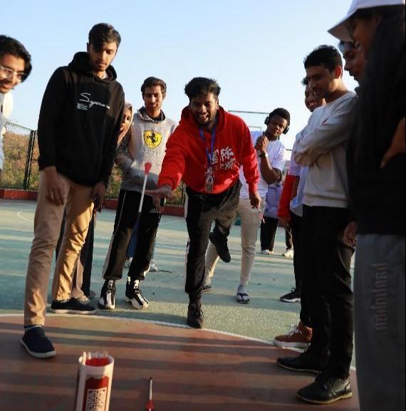 “投壶之礼”传统文化体验环节中,学生们踊跃参与,伴随着投中或连中的欢呼声与箭杆打击进壶的清脆响声,游戏接近尾声。