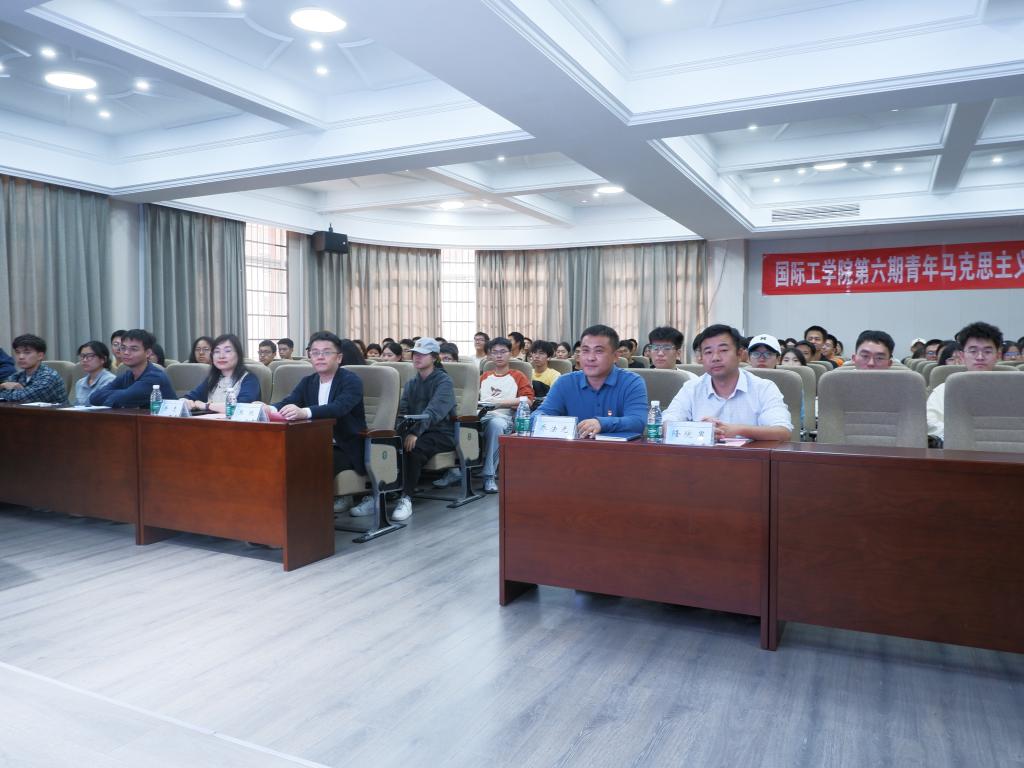 2024年11月12 日下午,国际工学院在文科楼D207举行了第六期青年马克思主义者培养工程培训班第一次理论课。本次课程邀请到正高级工程师,中核汇能湖南公司科研负责人,国际工学院企业导师张帆主讲,国际工学院党委副书记兼副院长乔法光,副院长隆院男,教务办主任余志,学工办老师和第六期“青马班”全体学员及留学生共130余人参加。