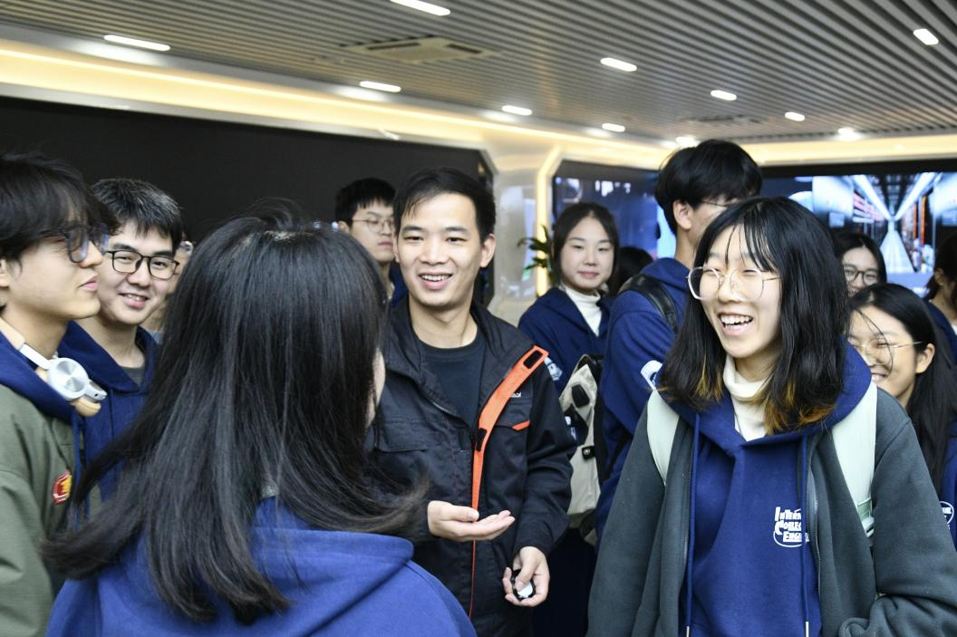 在“走进基地”实地参观中,在技术人员带领下,全体人员参观了公司总装车间生产线和产品展厅,零距离在生产一线学习观摩。“车间内,各种各样的机械臂有条不紊地挥舞,精准地完成每一次抓取、焊接,60秒完成一辆车组装;汽车质量检测环节也十分严格,车间内各种仪器设备对汽车进行全方位检查,从外观到性能,从零部件到整体协调性,确保每一辆出厂的汽车安全可靠……这一刻在电视和课本上的学习被具象化,我也被公司专业、高效、严谨的精神所感染,更加坚定了自己在未来学习和发展方向”,青马班学员李宛倩说到。