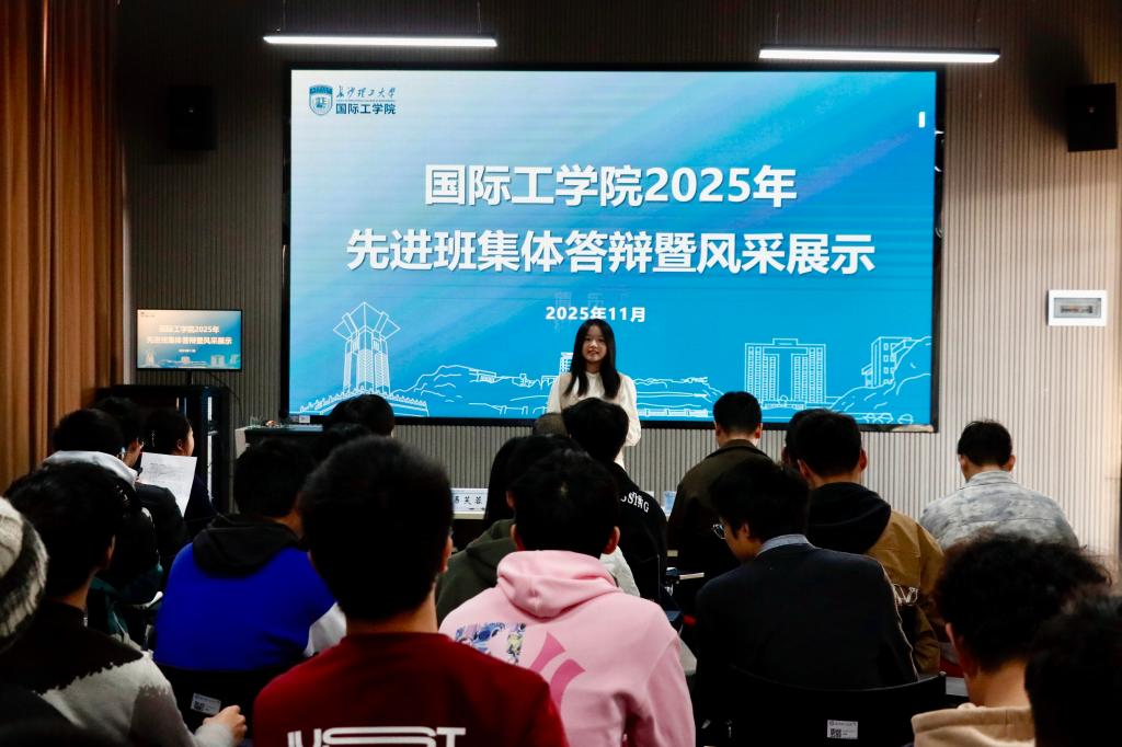 11月25日下午,国际工学院于文科楼D505报告厅举行2025年“先进班集体”答辩暨风采展示活动。本次活动由学院特邀党建组织员李争流、学工办辅导员老师担任评委,16个先进班集体候选班级、各班级班委代表共60余人参与。