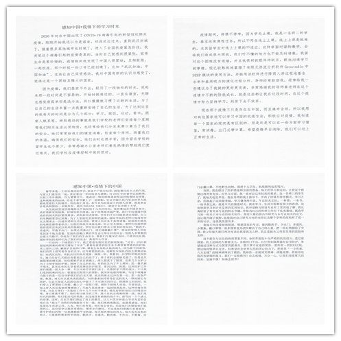 截止6月12日共征集到我校留学生作品20余篇。这些作品感情真挚的讲述了抗疫期间,发生在身边的抗疫故事。更表达了他们对中国政府在抗疫举措上的信任,对中国医疗工作人员、学校老师们的感激。