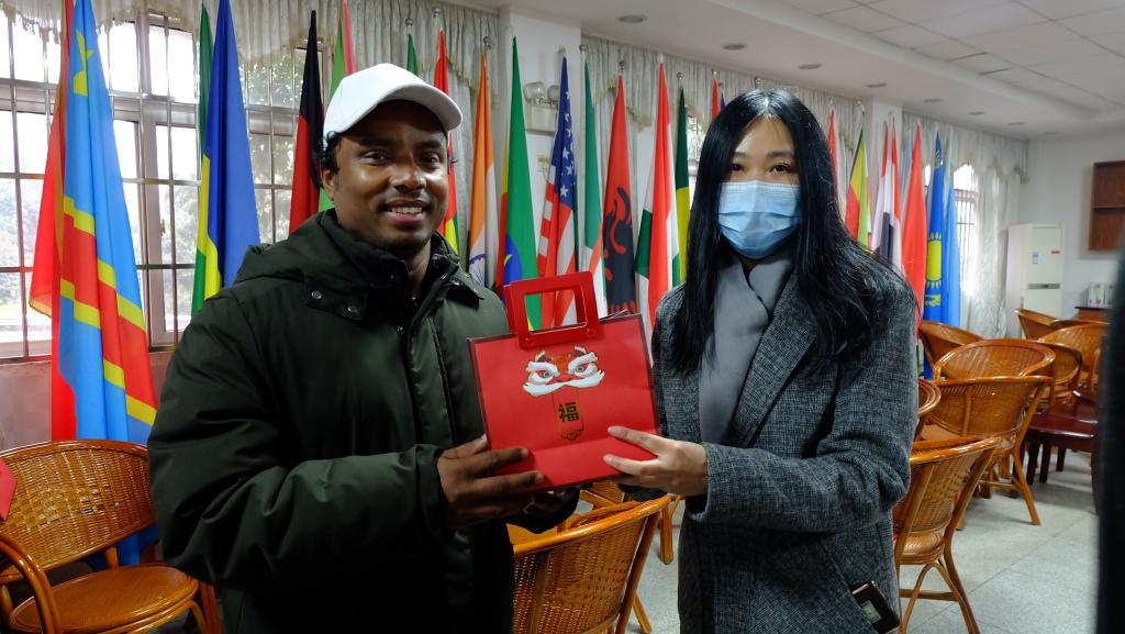 12月31日,国际学院副院长黄月华带领留学生工作部老师走访了留学生公寓,与近40名留学生进行座谈交流,向他们送上了新年的慰问与祝福,并发放了新年礼物。
