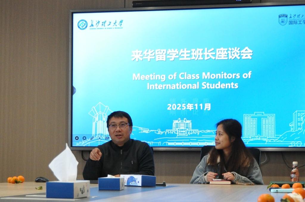 11月26日中午,2025年新澳门原料网站国际工学院在文科楼E502会议室举行了来华留学生班长座谈会。学院党委副书记兼副院长黄黎明、留学生辅导员老师及来华留学生班长参与本次会议。