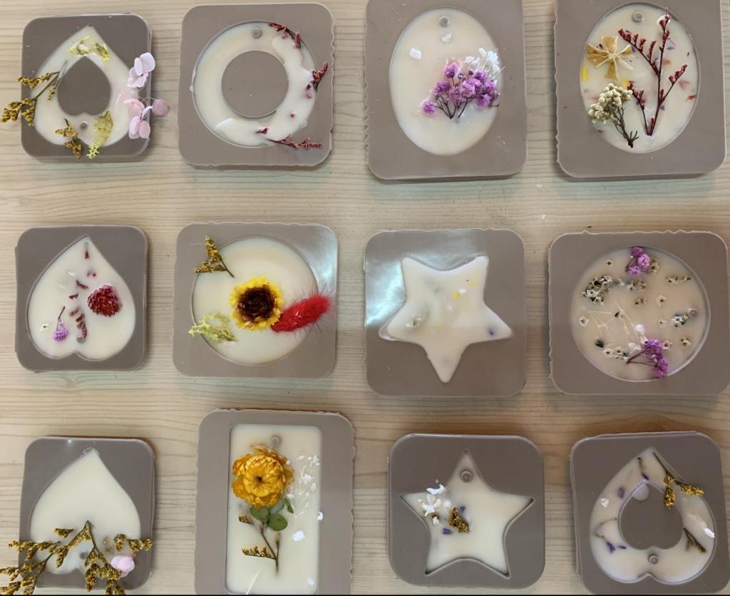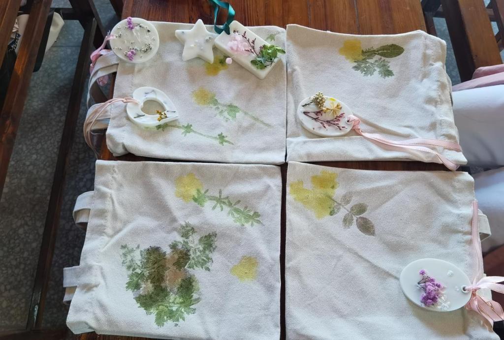 手工香薰和植物拓染手工制作活动开始前,老师提前为大家准备了香薰精油、大豆蜡、干花、帆布包等原材料,并详细讲解制作流程、注意事项等,女神们耐心倾听,跃跃欲试,现场气氛轻松活跃。通过认真学习和精心制作,一份份精美的香薰、包包成品呈现在眼前,大家脸上洋溢着幸福满足的笑容,纷纷表示这是一次美好的体验,是一场有成就感的艺术创作,是一份最好的节日礼物。