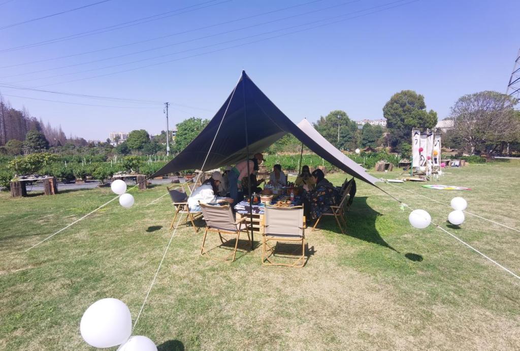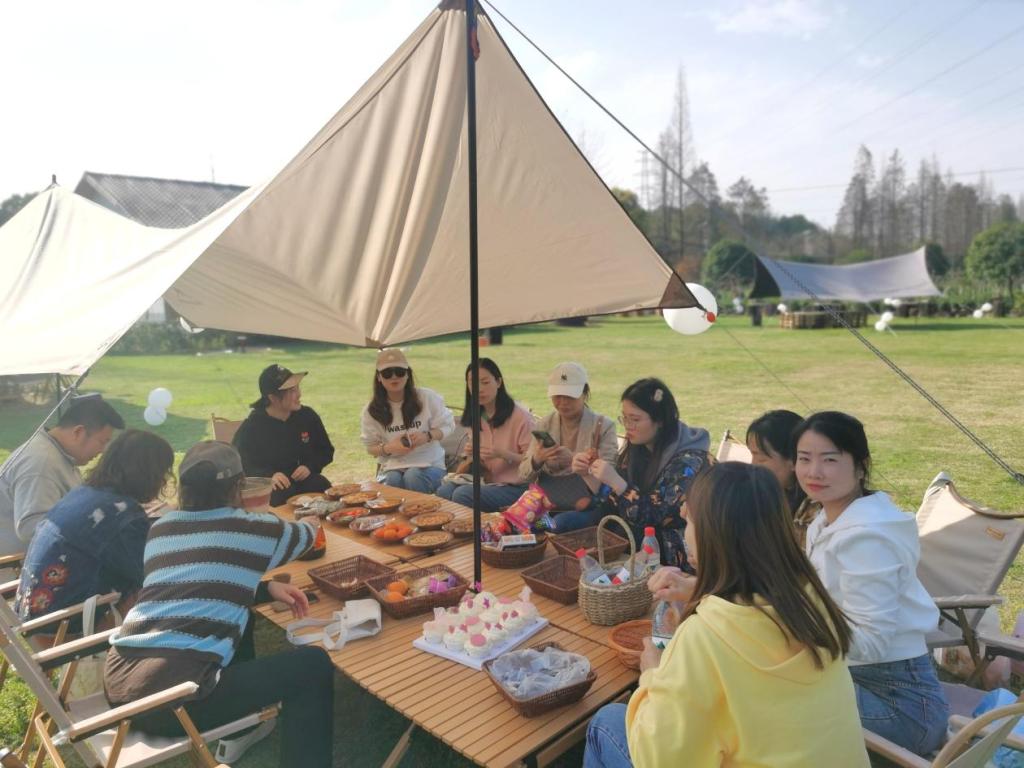 手工活动结束后,大家来到草坪露营基地,一片天幕,一席草地,大家聚在一起,喝茶聊天、围坐下棋、拍照打卡,欢声笑语,放飞自我,畅想工作与生活的无限可能……