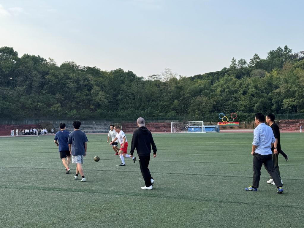 比赛在热烈的气氛中拉开战幕,双方迅速进入状态,展开激烈较量。教师队斗志昂扬、配合默契,教师队进入状态较快,凭借娴熟的脚下技术和默契的传接配合,屡屡组织起有威胁的进攻。学生队则展现迅速的跑动和积极的拼抢意识,脚下盘带、边路突破等场面接连上演,比赛前半段,学生队火力全开,展现出青春的活力与冲劲。