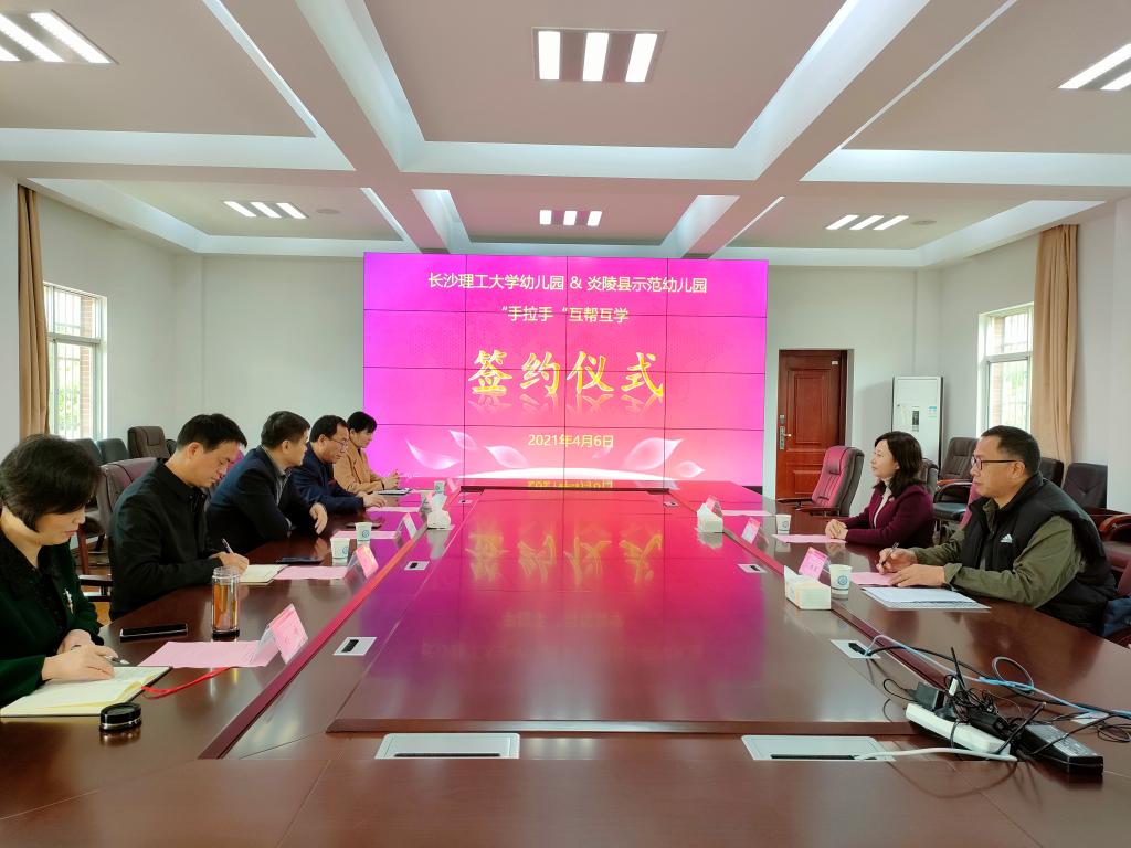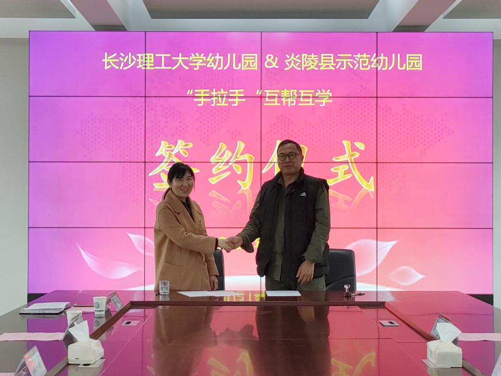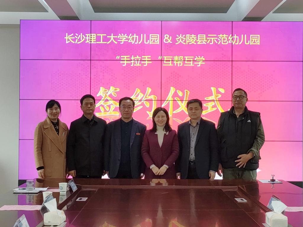 4月6 日上午,我校幼儿园与炎陵县示范幼儿园“手拉手”结对互帮互学签约仪式在云塘校区如期举行。炎陵县政府副县长沈红星及该县示范幼儿园党支部书记刘红军、我校后勤中心党委书记王明彦、主任施一满、副主任柳翼等相关领导出席了签约仪式,仪式由王明彦主持。