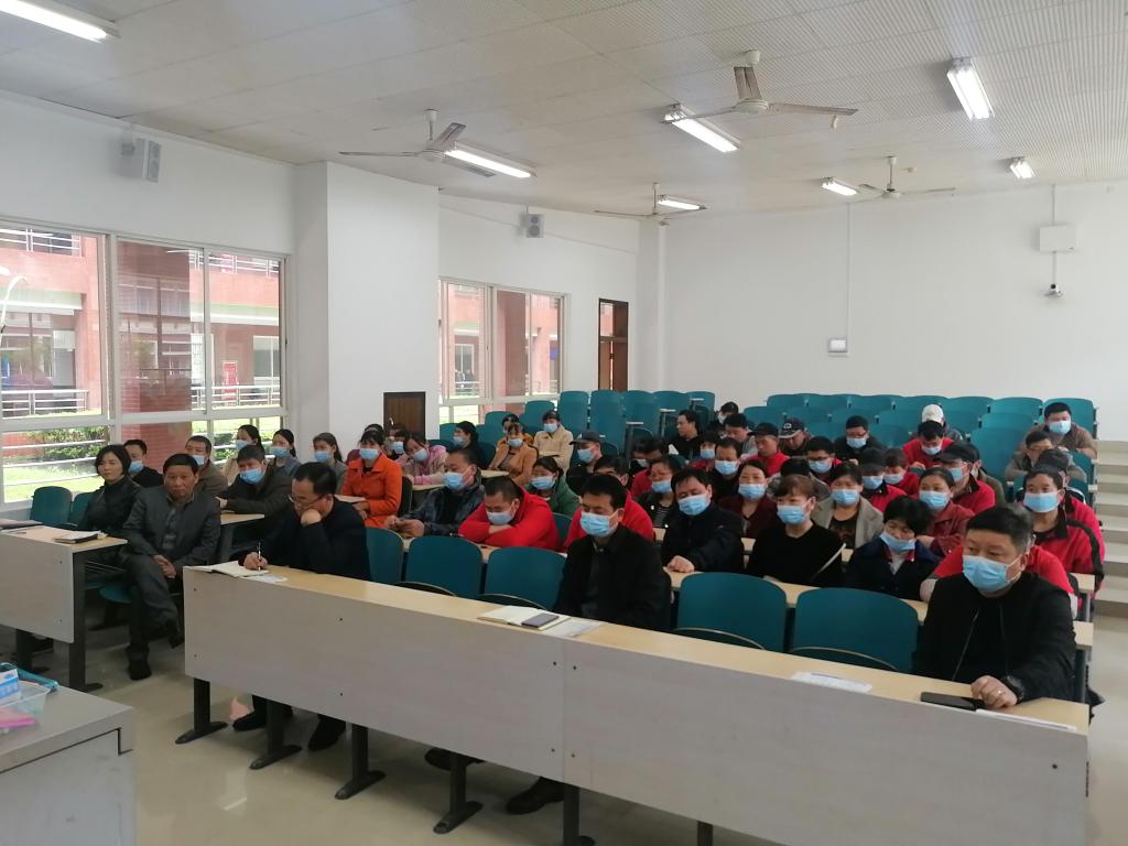4月14日下午,餐饮服务部自营食堂员工大会在综合教学楼B-107召开。后勤中心党委书记王明彦、副主任柳翼、综合办主任刘婷与会指导。餐饮服务部班子成员、办公室、自营食堂全体员工共60多人参加会议。会议由餐饮服务部主任李波主持。