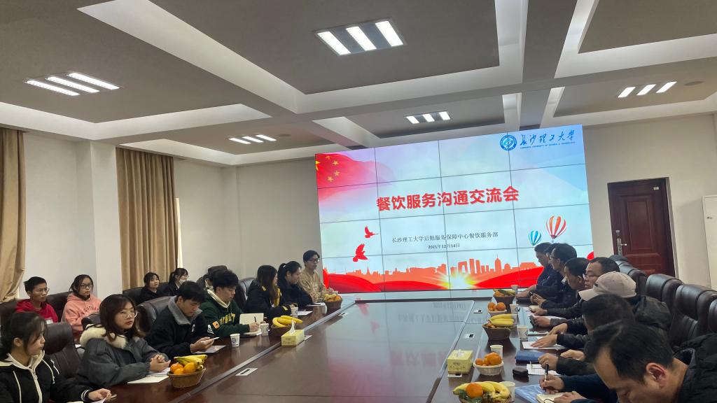 为客观真实地了解学生的餐饮需求,不断提高餐饮服务质量, 12月14日下午,后勤中心餐饮服务部联合校团委学生会在节能平台召开餐饮服务沟通交流会。后勤中心副主任刘治国、餐饮服务部班子成员、各食堂项目经理出席,来自校团委学生会生活权益部及各学院20多位学生代表参加了交流会。会议由餐饮服务部主任陈润志主持。