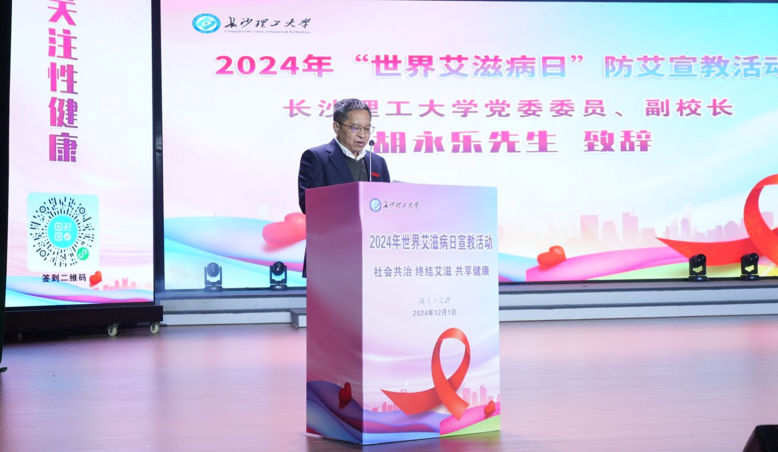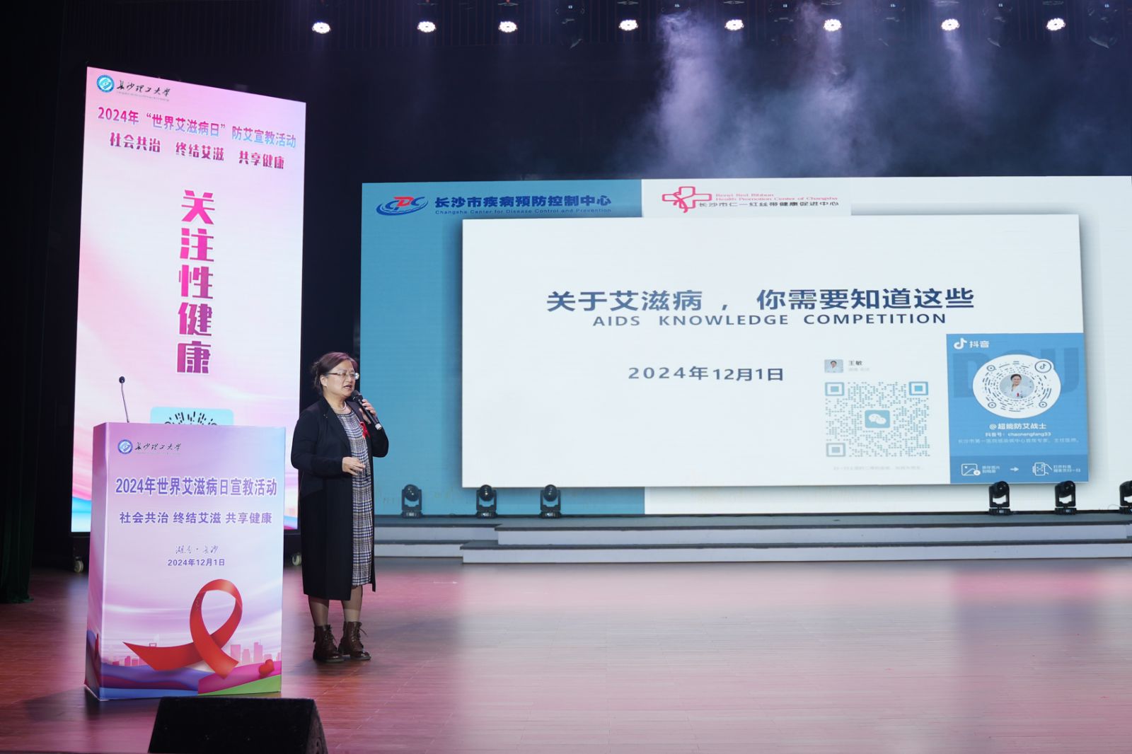 为积极响应国家关于加强艾滋病防治工作的号召,促进健康校园建设,12月1日19:00,我校联合长沙市疾控、天心区疾控、长沙市仁一红丝带健康促进中心、天心区妇幼保健所,在云塘校区大会堂开展“关注性健康,铸就美满人生”主题防艾宣教活动。校党委委员、副校长胡永乐,各相关部门负责人,天心区疾控、天心区妇幼保健所主管领导,千余名师生代表参加了本次活动。