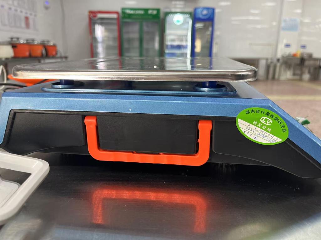 湖南省计量检测研究院应邀对食堂、超市所有在用62台件电子计价秤进行了全面检查,检查包括外观、性能和准确度等方面,对检定合格的电子计价秤在明显位置张贴合格标签,建立健全台账。
