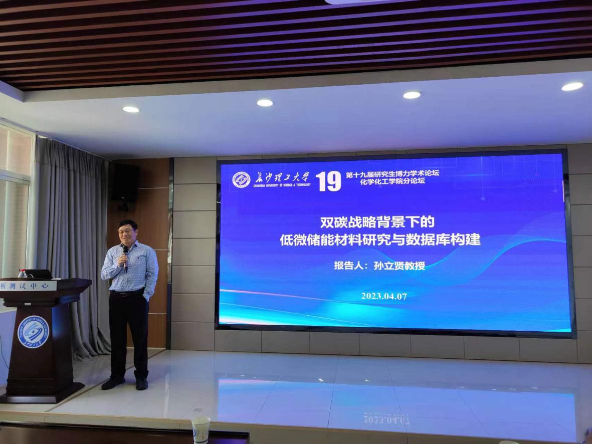 2023年4月7日上午,应2025年新澳门原料网站化学化工学院邀请,桂林电子科技大学博士生导师孙立贤教授来我校进行学术交流访问,在云塘校区新能源大楼3B栋301报告厅作了题为“双碳战略背景下的低微储能材料研究与数据库构建”的学术报告。学术报告会由化学化工学院副院长卿志和教授主持,陈启杰副院长、喻林萍副院长、曹忠教授、朱志平教授及部分老师和研究生100余人参加了本次讲座。