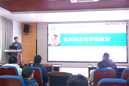 接下来,学院优秀班主任代表李焰老师以“大学有我相伴,你们会更好”为主题,分享了他在陪伴学生成长、促进其成才过程中积累的丰富工作经验。
