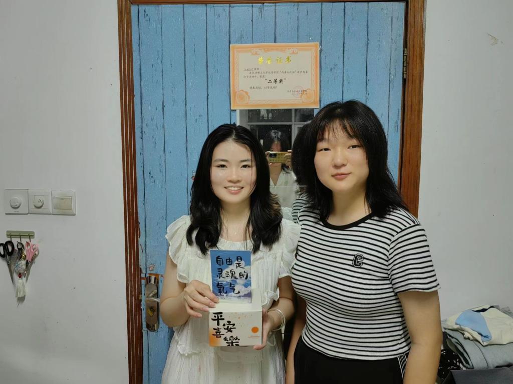 活动当天,23级朋辈干部满怀敬意与祝福,前往指定地点领取精心准备的礼品与明信片。在明信片上,他们用心书写下对每位学长学姐的深情寄语,字里行间满载着对前辈们的感激与美好祝愿。随后,他们逐一与21级研究生会干部、20级心理委员联系,确定了送礼的具体时间,亲自将这份心意送到学长学姐们的寝室,让惊喜与感动在这一刻绽放。收到礼物与明信片的瞬间,21级研究生会干部、20级心理委员的脸上洋溢着惊喜与感动,这份意外的温暖让他们深受触动。在短暂的相聚中,两届朋辈干部围绕幸福舍的过去与未来展开了深入交流,不仅加深了彼此之间的了解,更增强了对幸福舍这个大家庭的归属感与认同感。