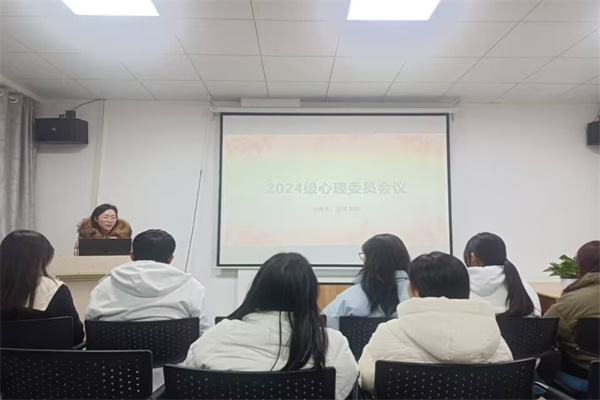 会议伊始,江洁向心理委员普及了心理健康知识,强调了关注同学情绪变化、及时识别心理问题的重要性。她指出,心理委员是班级心理健康工作的“前哨站”,要主动关心同学,及时发现潜在的心理问题,并积极寻求专业帮助。随后,江洁结合近期学生动态,特别指出要重点关注英语四级未通过及上学期挂科学生的心理状态。她建议心理委员通过谈心谈话的方式,给予这些同学必要的支持和帮助,帮助他们缓解压力,树立信心。最后,江洁对心理委员的工作提出了具体要求。她强调,心理委员要认真履行职责,积极参与学院组织的心理健康教育活动,并及时向辅导员反馈班级同学的心理健康状况。同时,她鼓励心理委员加强自身学习,不断提升专业技能,为班级同学提供更优质的心理服务。
